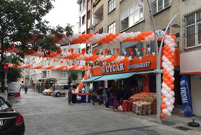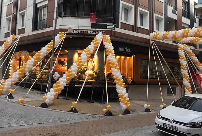 Balon süsleme organizasyonu şirketleri ile görüşerek açılış kokteyli ve diğer açılış törenleriniz için balon süsleme hizmeti alabilirsiniz. Bu şirketler kapı süslemesi kemer balkon süslemesi ve sokak süslemelerini balonlar ile yaparlar. Bunun dışında mağaza ya da restoranınızın yer almış olduğu binayı balonlarla süsletebilir ve açılışlarınızda her yerden fark edilebilecek görkemli bir sunum yaratabilirsiniz. Bununla birlikte firmanıza özel balon süslemesi yaptırarak özel balon süsleri sayesinde açılışlarınızı festivallerden eksik kalmayacak bir atmosferi büründürebilirsiniz. Kurumsal ve marka renklerinizi taşıyan balonlar ile kapı süslemeleri ve kemer balonlar yaptırabilir ve balonlarınızın üzerine logonuzu da bastırabilirsiniz.